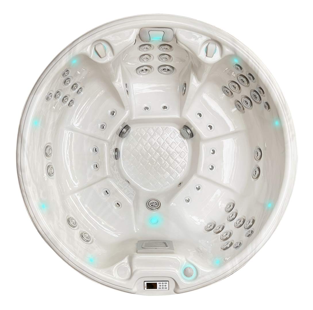Le spa Recharge est conçu pour offrir des années de détente avec un confort exceptionnel. Doté de 7 places spacieuses et de 60 jets de massage, il procure un massage intense du bas du dos jusqu’au cou, avec une intensité réglable selon vos besoins. Son système de massage à air doux, ses lumières LED StarBrite et son option d’aromathérapie créent une ambiance apaisante, idéale pour une relaxation totale.