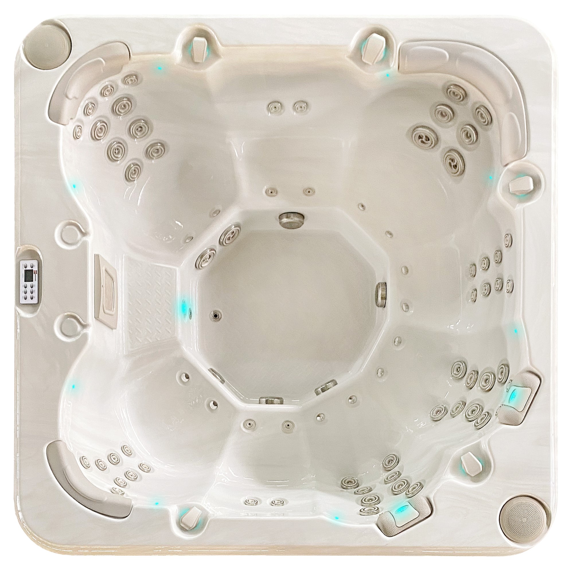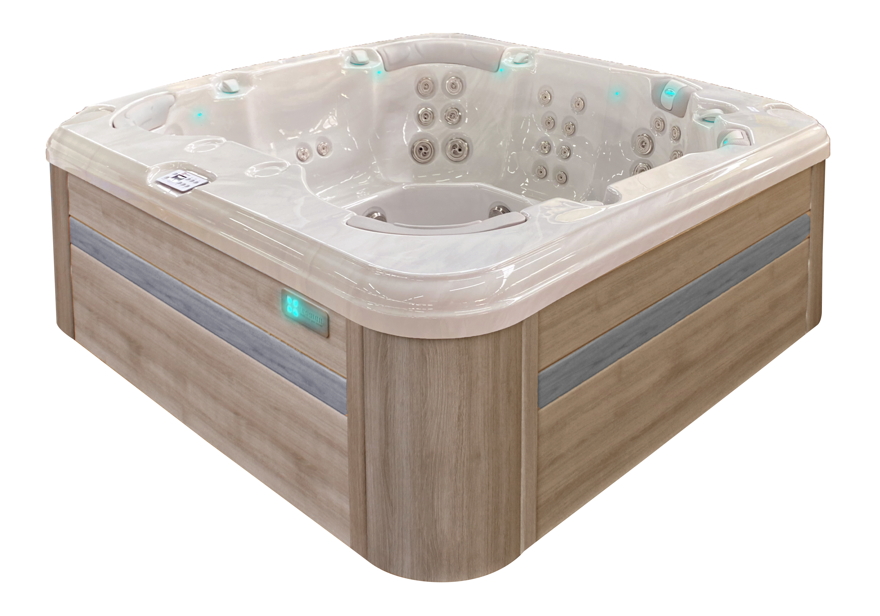 Spa Resettle 8 places, bien-être social avec 70 jets, éclairage LED et audio intégrés. Disponible chez ACV Tech. Commandez dès maintenant !